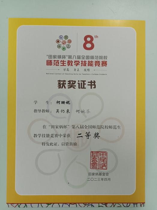 我校柯姗妮同学获物理组二等奖