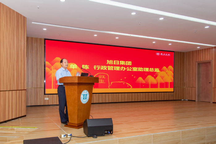 车小真在讲话中回顾了学校与旭日集团、佛山市安东尼针织有限公司开展校企合作的办学历程。她表示,对于学校,校企合作协同育人38年、12年不再是简单的数字,而是一份历久弥新的家国情怀、教育情怀和责任担当,是永远值得学校和学生感恩和感谢的。同时她对获奖同学和集体表示祝贺,并提出三点希望。一是希望同学们谨记习近平总书记的嘱咐,坚定不移听党话、跟党走,怀抱梦想又脚踏实地,敢想敢为又善作善成,只争朝夕,不负韶华。二是希望同学们严格要求自己,做有理想、敢担当、能吃苦、肯奋斗的新时代好青年,为实现第二个百年奋斗目标、实现中华民族伟大复兴的中国梦贡献自己的一份力量。三是希望同学们向前辈学习,学习杨钊和杨勋先生的家国情怀和责任担当,学习刘必胜校友的创新创业精神和回馈母校的感恩精神。她勉励大家饮水思源,珍惜荣誉,将自己的人生抱负与国家、社会、学校的发展和需要紧密结合起来,在实践中锻炼成才,在自己有能力的时候,回馈社会、报效祖国。