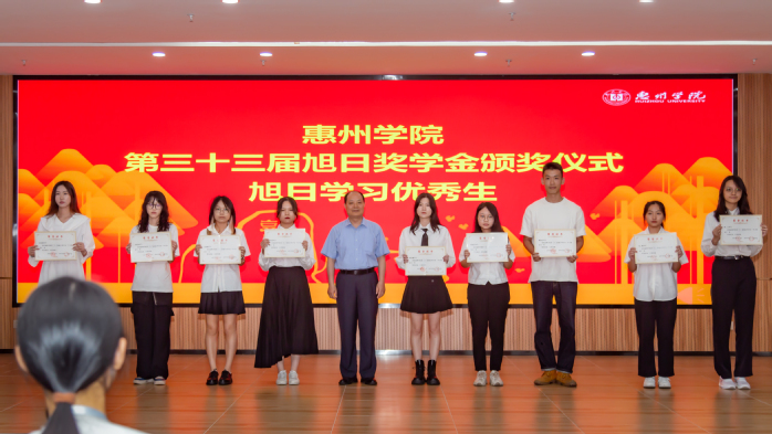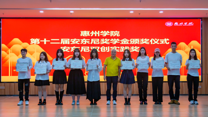 与会领导共同为获奖学生颁发荣誉证书。获奖学生代表梁晓彬、徐晓雯在获奖感言中,表达了对旭日集团、佛山市安东尼针织有限公司,对杨钊和杨勋先生以及对刘必胜学长的真诚感谢以及诚挚祝福,并表示他们将会以此次获奖为起点,继续保持学习动力,更加努力,奋斗的脚步永不停息,争做新时代好青年。