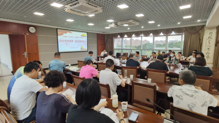 刘国栋以认真开展学习贯彻习近平新时代中国特色社会主义思想主题教育为切入点,强调了主题教育的重要性以及“学思想、强党性、重实践、建新功”总要求,要求全体党员干部要进一步提高政治站位,先学一步、深学一层,深入研读主题教育指定的权威教材、重要著作,读原著、学原文、悟原理,全面学习领会习近平新时代中国特色社会主义思想的科学体系、核心要义、实践要求,学思践悟、学用结合,不断增进对党的创新理论的政治认同、思想认同、理论认同、情感认同。刘国栋从党性修养的重要性、如何开展党性修养、定期开展党性剖析三个方面作详细讲解,强调加强党性修养要从加强理论修养、加强政治修养、加强道德修养、加强纪律修养、加强作风修养六个方面下功夫,并要求全体党员干部要信念坚定、为民服务、勤政务实、敢于担当、清正廉洁。