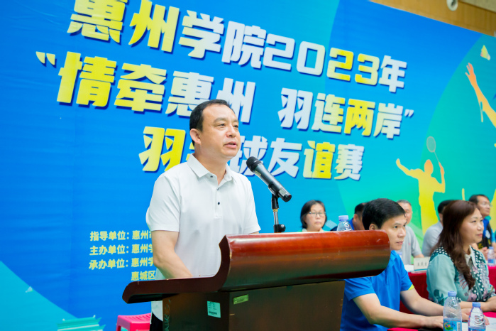 开幕式上,惠州市台商投资企业协会会长吕正一对我校的热情邀请与精心组织表示感谢。他表示,希望以本次羽毛球友谊赛为契机,以体育交流互动为载体,齐心协力增进两岸青年相互了解,推动两岸融合发展,深化学校与在惠台商的交流合作,构建多层次、宽领域的校企合作关系。同时,他还鼓励更多台湾青年来惠创业,为惠州高质量发展作出贡献。