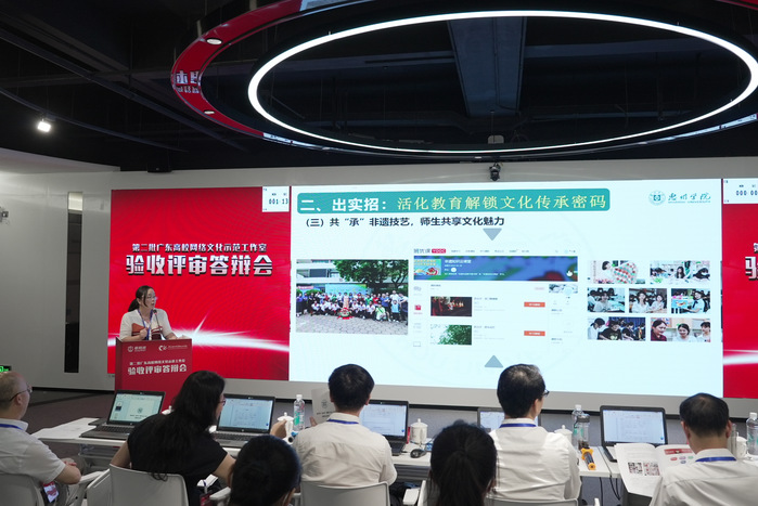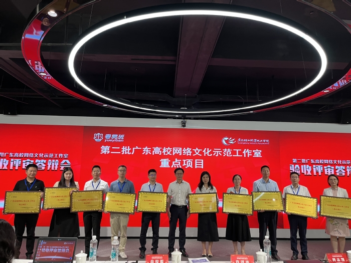 本网讯 5月26日,广东高校网络思想政治工作中心召开第二批广东高校网络文化示范工作室结项验收评审会,我校“易传承”网络文化工作室顺利通过结项验收,获颁第二批广东高校网络文化示范工作室重点项目牌匾。