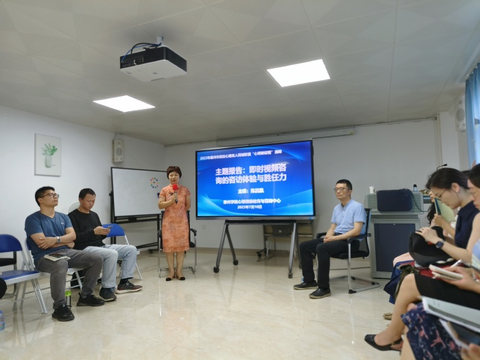本网讯 为进一步加强学校心理健康教育队伍建设,提升心理咨询实效,7月10日下午,由我校党委学生工作部、工作处(合署)、心理健康教育与咨询中心主办的“心师新征程”专业培训活动在少康楼4楼团体活动室举行。本次培训由心理中心副主任钟小川主持,南京大学心理健康教育与研究中心主任,中国心理学会注册督导师陈昌凯副教授受邀作为培训师和督导师,惠州市高校心理育人同城联盟各校心理中心的专兼职心理咨询师共同参与。