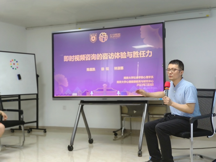 培训分为两部分,首先由陈昌凯副教授做《视频咨询的咨访体验与胜任力》主题分享。他指出,即时视频咨询的影响力正在随着时代的发展逐步扩大,而其中的体验、效果及胜任力值得研究和考量。研究通过对比即时视频咨询和面对面咨询的效果差异,以及咨询师与来访者在视频咨询过程中的体验差异,关注和建构即时视频咨询所需要的胜任力要素及其对咨询效能的影响和预测作用,拓展和丰富了广大心理咨询师在该领域工作的视野,让涉及即时视频咨询的专业助人者工作有据可依、更具信心。