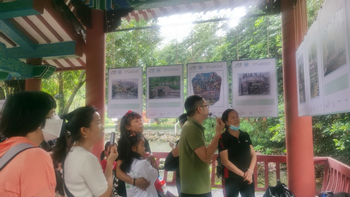 随后,师生一行前往罗浮山实践基地参观“印象罗浮——庆祝美术与设计学院成立30周年暨罗浮山采风作品展”,黄燕进老师讲解师生作品创作背景和技法,在罗浮山水辉映中,将地方文化创作成果惠及群众。