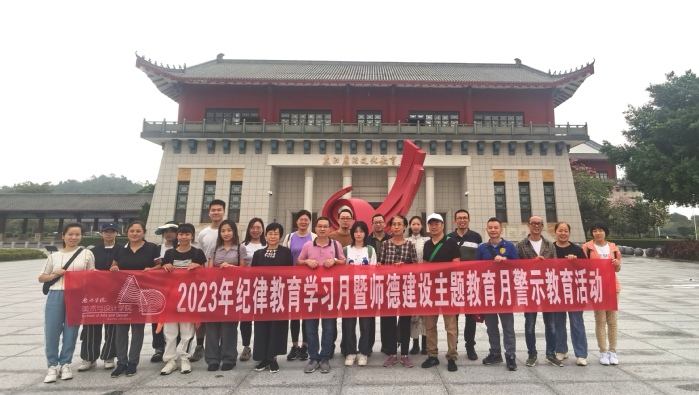 本网讯 为扎实开展纪律教育学习月活动,深化师德师风建设主题教育,10月28日,美术与设计学院党总支组织教师、学生党员代表近40人赴东江廉洁文化教育基地和东江纵队纪念馆参观学习,本次活动由党总支书记邓育明领队,环境设计系主任徐进主讲。