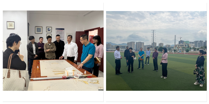 在和平县华强中学,我校美术与设计学院“双百行动”先锋队实地了解学校办学概况、办学设施、人才培养以及美育课程建设等情况,并与该校参与美育工作教师座谈。座谈会上,双方围绕美育工作等方面进行交流,美术与设计学院院长李帆针对华强中学在美育教育发展中存在的难点与痛点问题提出建议,建议该校融入地方文化,打造美育品牌特色活动。华强中学校长徐友青和副校长黄国拉、和平县“双百行动”专班人员参加调研。