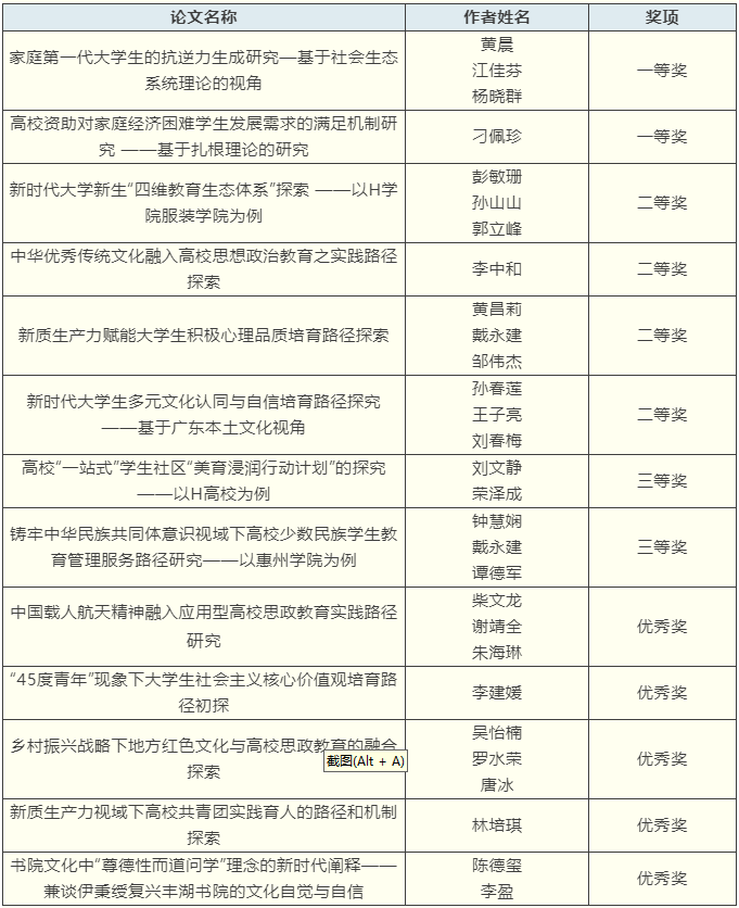 本网讯 近日,2024年广东高校思想政治工作优秀论文、优秀案例、优秀网络课程推选展示活动结果公布。我校共27个作品获奖,其中一等奖4项,二等奖10项,三等奖6项,优秀奖7项。