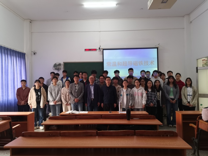 本网讯 3月9日,我院邀请中国科学院近代物理研究所袁平研究员在旭日楼102课室作《常温及超导磁铁技术》的专题学术讲座。我院院长龙达峰、副院长林宏翔以及重离子加速器卓越工程师班学生参加讲座。