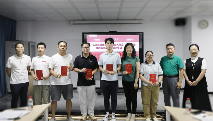 第二阶段,机关党委为16名青年党员集体过“政治生日”,感悟入党初心,重温入党誓词。邓淑容,机关纪委书记赖昭华,机关党委正处级组织员李富明,机关党委委员、校团委副书记郭德厚,校工会党支部书记、副主席佟欣婷为过政治生日的党员赠送“政治生日”贺卡。“政治生日”党员代表朱海琳、黄新银、钟益鸣结合各自岗位实践进行了交流发言。他们回顾了入党初心与心路历程,分享了在公文办理、薪酬保障、校园安保等服务工作中践行党员使命的体会,表示将始终坚守服务师生的宗旨,精进业务能力,发扬优良作风和甘于奉献的精神,为学校事业发展贡献力量。