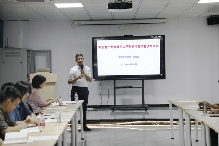 活动分三个阶段进行:第一阶段是运用“思享学堂”平台,开展师德师风专题教育,邓淑容带领大家集中学习习近平总书记给全国特岗教师代表的重要回信精神,传达学习学校2025年师德建设主题教育月活动方案有关精神;接着,经济管理学院党委副书记、院长李普亮作《新质生产力背景下应用型本科高校的使命担当》辅导报告,围绕新质生产力的内涵特征、发展新质生产力解读及分析应用型本科高校在人才培养、科学研究等方面对接新质生产力发展需求,着重强调师德建设的重要性,引导大家深入学习新时代高校教师职业行为十项准则,始终坚持把涵养师德作为立身之本,继续坚守教育初心,不断提高教书育人本领,自觉塑造新时代人民教师的高尚品格。