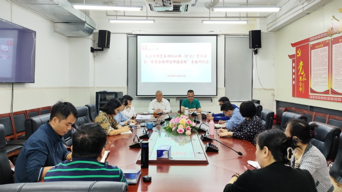 本网讯 10月27日,政法学院党委在科技楼B座1608会议室召开党委理论学习中心组(扩大)学习会暨“教育家精神与师德实践”专题研讨会。会议由学院党委书记曾蔚阳主持,党委委员、各党支部书记及各系主任参加会议。