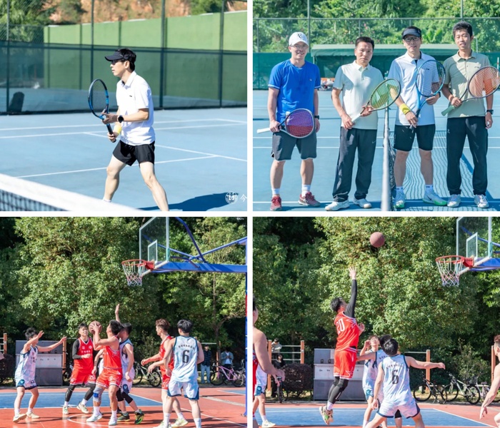 当天,第二届“校友杯”网球邀请赛与第三届校友篮球交流赛,先后在学校中苑篮球场和网球场顺利举行。赛事中,校友们以球会友、挥洒汗水,充分展现了“青春永不毕业”的惠院情怀,现场气氛热烈,浓浓的同窗情与母校情谊贯穿始终。
