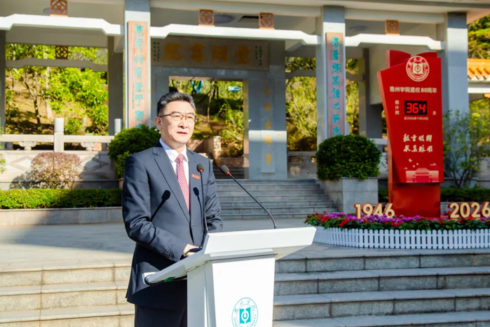 启动仪式上,王胜宣读了《惠州学院建校80周年公告(第一号)》,系统回顾了学校近八十年来与国家发展同向同行、与时代浪潮同频共振的办学历程和育才使命。