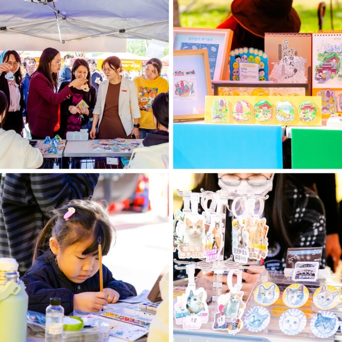 旭日广场上,校友企业展、社团艺术节、创意集市、美食节等系列活动同步开展,吸引了众多师生校友驻足参与。创意手作、地方美食与文化互动交织,展现出校园文化的蓬勃生机与无限活力。