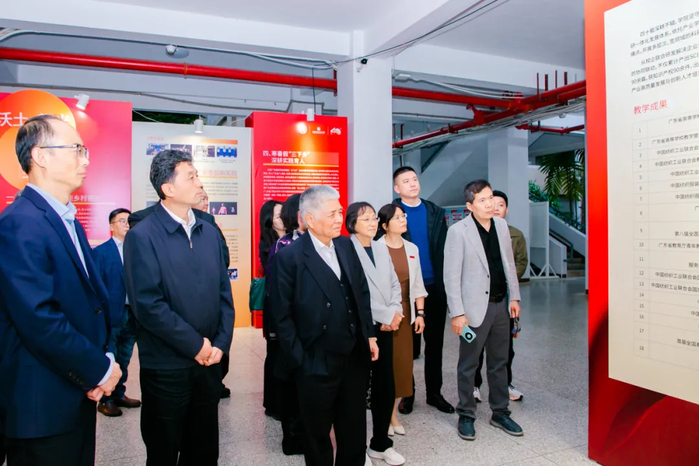 29日下午,杨勋先生等与会嘉宾在王胜的陪同下,参观了惠州学院旭日广东服装学院产教深度融合成果展。展览集中呈现了校企合作在人才培养、科技创新、社会服务等方面取得的成绩,生动体现了惠州学院和旭日集团校企合作的深度与广度。