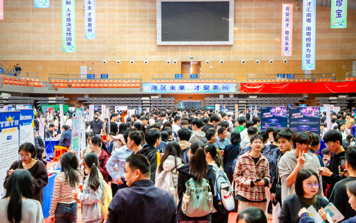 本网讯 为落实广东省委、省政府“百万英才汇南粤”行动计划部署,精准助力在惠高校毕业生高质量充分就业,12月8日,“粤聚英才・粤见未来”——“百万英才汇南粤”2025年全省联动专项招聘活动惠州专场招聘会在我校金山湖体育馆如期举行。本次招聘活动由中共广东省委人才办、广东省人社厅、广东省教育厅主办,中共惠州市委人才办、惠州市人社局、惠州市教育局以及我校共同承办。