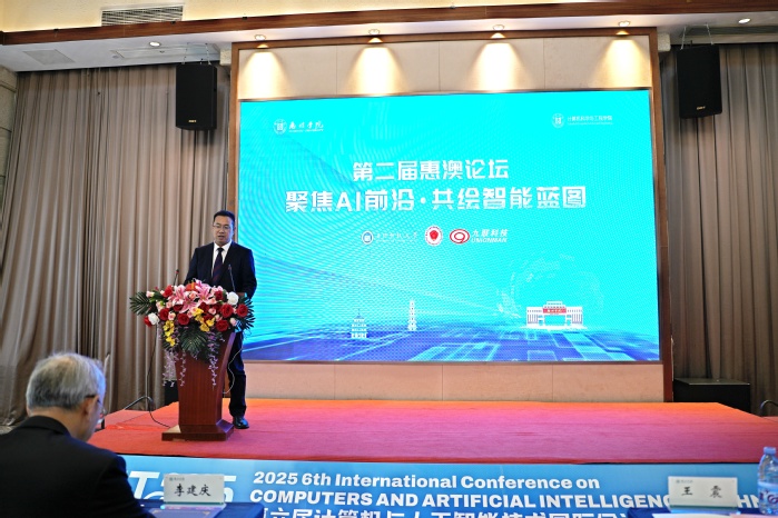 计算机科学与工程学院院长王震在致辞中表示,本次论坛的宗旨是紧密围绕国家政策导向,为惠州与澳门两地搭建一个创新、开放、协作的学术对话平台。期待本次论坛能推动惠澳两地高校、科研机构与企业间建立更紧密的伙伴关系,在联合科研攻关、人才培养交流、科技成果转化等方面结出丰硕成果,共同为粤港澳大湾区国际科技创新中心的建设贡献力量,为全球人工智能的发展注入新的活力。