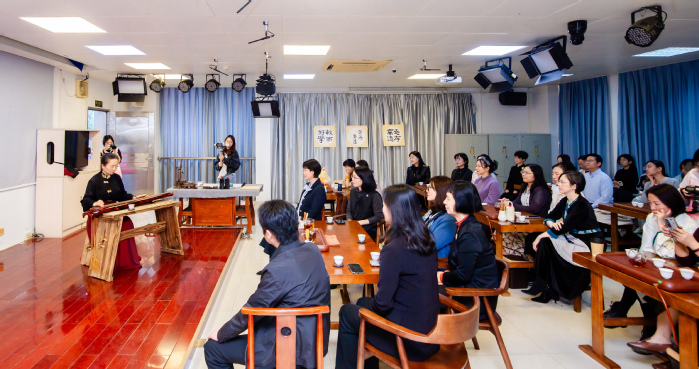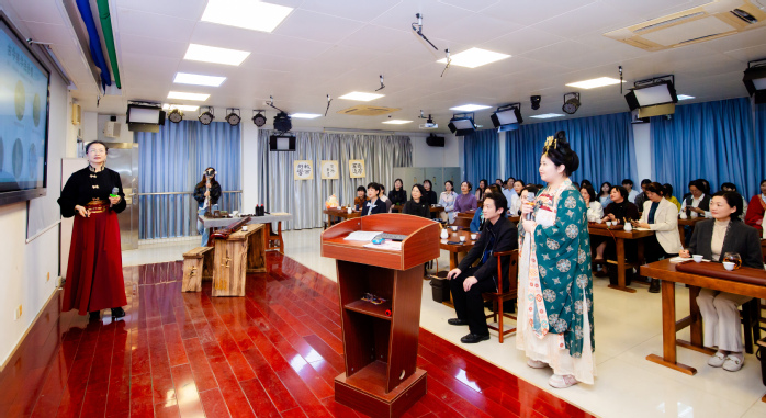 在现场互动环节,两校师生身着传统服饰,在琴声与茶香中沉浸式体验唐韵雅集。我校团队还通过服饰动态演绎、茶艺联动等创新形式,让静态的传统文化“活”起来,充分展现了我校美育工作“线上线下结合、校内校外联动、文化科技融合”的鲜明特色。活动后,两校围绕服装设计专业建设、美育课程开发等议题展开深度交流,我校分享了“美育工坊”五十九期活动积累的宝贵经验——服务校内外单位56家、覆盖师生超7000人次的成熟模式,为双方后续深化合作、共建粤港澳大湾区高校美育共同体奠定了坚实基础。