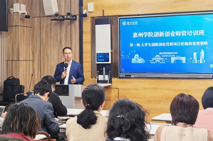 本网讯 为推动学校创新创业教育高质量发展,近日,我校创新创业学院启动“创新创业师资培训系列活动”。本次培训共设三场专题讲座及系列专项辅导,内容涵盖创新创业项目挖掘和备赛策略、专创融合课程建设、商业计划书撰写优化等关键环节,旨在全面提升教师双创指导能力与课程建设水平。系列培训活动吸引了各学院相关领导、专创融合课程负责人、项目指导教师等近两百人次报名参与。