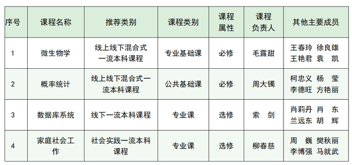 本网讯 近日,教育部公布第三批国家级一流本科课程认定结果,我校《微生物学》《概率统计》《数据库系统》《家庭社会工作》四门课程成功入选。至此,我校国家级一流本科课程总数已达8门,位居同类高校前列;在全省73所本科高校(含校区)中,我校三个批次入选的课程总数位列全省第20位,标志着学校在深化教学改革、构建高质量本科教育体系方面取得新的重要突破,彰显了学校扎实的教学基础和良好的发展态势。