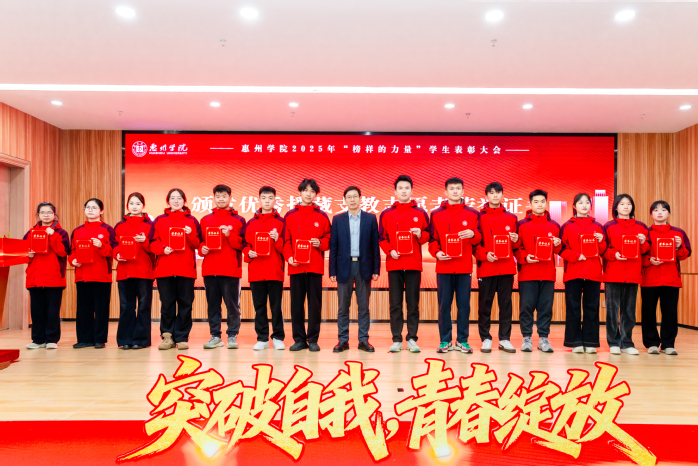 本网讯 冬日暖阳沐桃李,砥砺奋进续华章。12月30日,我校在旭日科技大楼A座201报告厅举办2025年“榜样的力量”学生表彰大会。校长王胜,副校长刘国栋、郑文,省监委驻惠州学院监察专员、校纪委书记张硕,相关职能部门负责人和二级学院师生代表参加会议。
