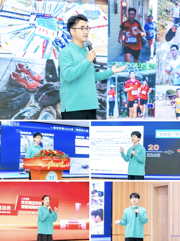 “敦重”荣誉奖章获得者上台分享他们奋斗的青春故事。陈凯炼同学在智能车赛道上以0.3秒的极致突破,诠释了“毫厘必争”的科研匠心;郑东阳同学用磨破的鞋底与高原支教的足迹,撕掉了“体育生躺平”的标签;黄明深同学在1%的获奖概率中逆风翻盘,证明“极限不过是勇者的试金石”;陈泳希同学以德智体美劳的“参数均衡”,演绎了全面发展的青春方程式;杨小龙同学则把实验室搬进企业车间,让导热凝胶的8.2W数据成为“知行合一”的注脚。他们用行动告诉在场的同学们:“敦重”不是刻板的勋章,而是突破舒适区的勇气,是凌晨实验室的灯光,是赛场咬牙的冲刺,是把“不可能”踩成垫脚石的倔强。