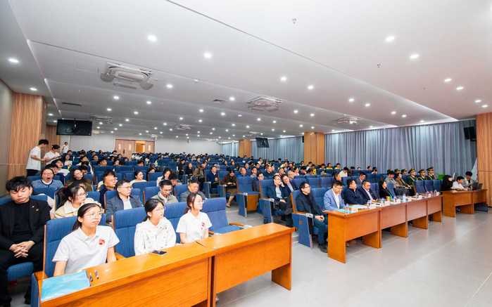 本网讯 12月30日下午,2025年暑期社会实践活动总结表彰大会暨2026年寒期社会实践活动启动仪式在旭日科技大楼A座201报告厅顺利举行。学校党政办公室、宣传统战部、学生工作部、教务部、校团委等部门相关负责人,各二级学院党委书记、副书记、团委书记,全体辅导员,优秀指导老师代表、获奖团队代表、优秀个人代表以及学生代表,校团委全体工作人员等近400人参加活动。