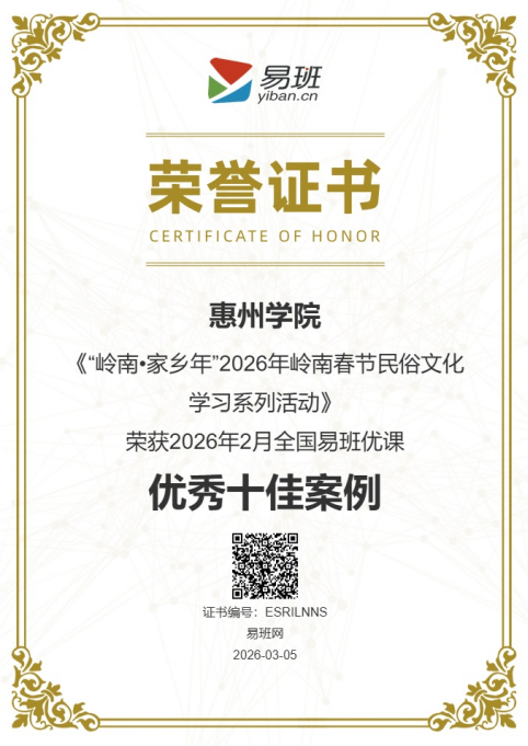 本网讯 近日,教育部“易班”发展中心公布2026年2月全国“易班”优课优秀十佳案例评选结果,我校《“岭南•家乡年”2026年岭南春节民俗文化学习系列活动》成功入选,彰显了学校网络思政与文化育人工作的扎实成效。