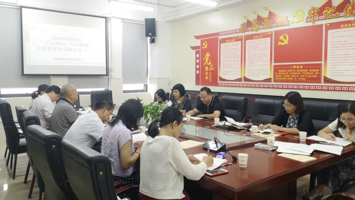 本网讯 按照学校党委工作部署,结合学院工作实际,10月12日上午,政法学院领导班子、各党支部书记和组织员在学院1608会议室召开“不忘初心、牢记使命”主题教育第二场专题学习研讨会,学校主题教育第三指导组组长金伟,副组长李金利到会指导。会议由学院党总支书记、院长蒋炜主持。