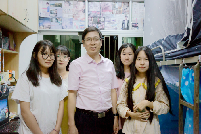 郑文副校长与挂钩联系宿舍的同学们合影