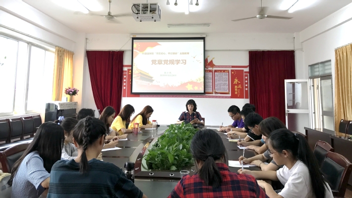 本网讯 10月24日下午,外国语学院在旭日大楼523会议室召开“不忘初心、牢记使命”主题教育党章党规学习会。学院党总支书记张小琨、教师代表、学生党员和团学干部代表参加了学习会。