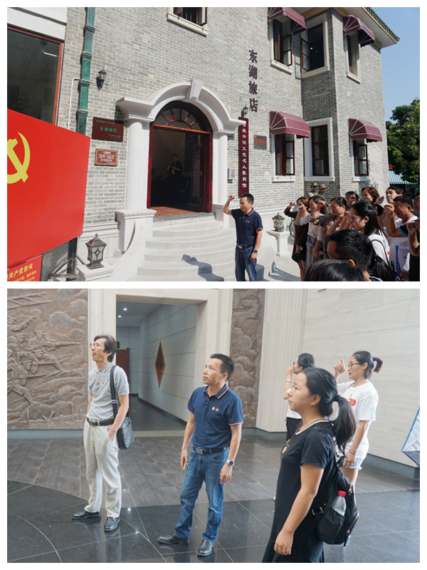 专题会结束后,全体党员前往两个红色教育基地开展革命传统教育,在营救中国文化名人陈列馆(惠州市东湖旅店旧址)门口重温了入党誓词,并跟随讲解员认真参观了“营救之路”“转移惠州”和“党旗高扬”三大展区,通过听讲解、文字讲述、图片佐证、实物展示、多媒体演绎等方式,借助雕塑、模型等,全面真实了解秘密大营救的历史。在叶挺纪念馆,大家学习了解了叶挺将军一生的卓越贡献。党员同志们纷纷表示,将以此次学习教育为契机,重温历史、缅怀英烈,进一步提高为民服务的宗旨意识。