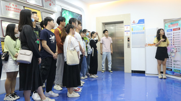 在科技园工作人员的带领下,学院师生前往广工大新型研发机构参观,系统了解广工大研究平台建设的背景、科研支撑、建设成效情况,并重点参观了研究机构的重要研发产品——博文机器人、北斗基带芯片及应用系统研发及制造企业能效优化与分析系统等。