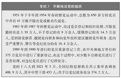 在革命、建设、改革中,中国共产党面临着形形色色的考验。外部世界的各种诱惑,管党治党的松懈松弛,党员思想行为的不良变化,都会对党的肌体造成侵害。党坚决同影响党的先进性、弱化党的纯洁性的各种现象作斗争,不断医治病症,坚决铲除毒瘤,保持肌体健康。